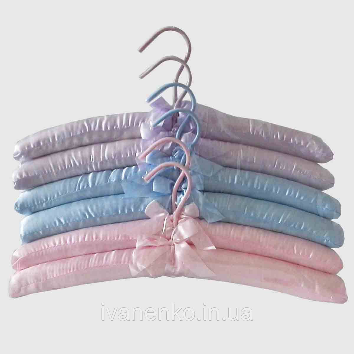 Тканинні плічка виготовлені з міцної дерев'яної основи в поролоні й обтягнуті сатиновою тканиною, всередині пришиті акуратні бантики, а також тримпель має металеву перекладину та прищіпками для штанів і спідниць. Такі вішалки призначені для демонстрації одягу в торгових залах, а також використовуються в домашніх умовах. Плічка чудово підійдуть для делікатних речей, завдяки м'якій тканинній поверхні, Ви можете не хвилюватися, що на Вашому одязі залишаться зачіпи або інші пошкодження.